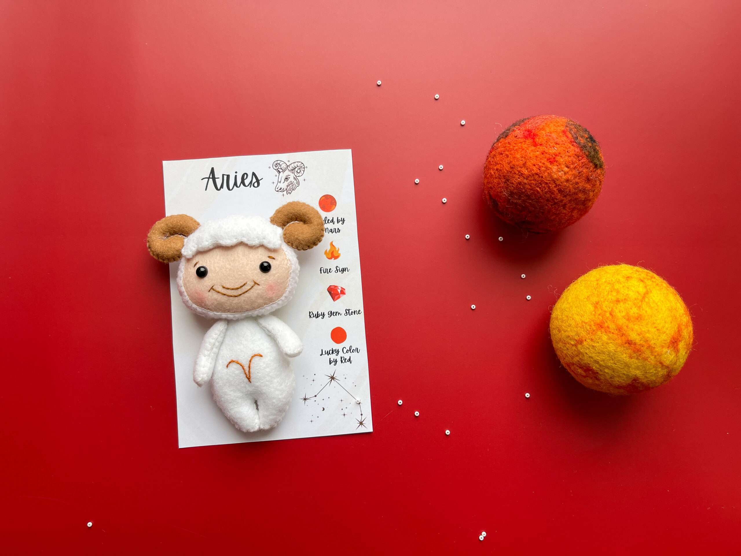 Іграшка-знак зодіаку Овен – це ручна робота, виконана з безпечних та еконогічних матеріалів. Вона має форму символу знака зодіаку – овечки.