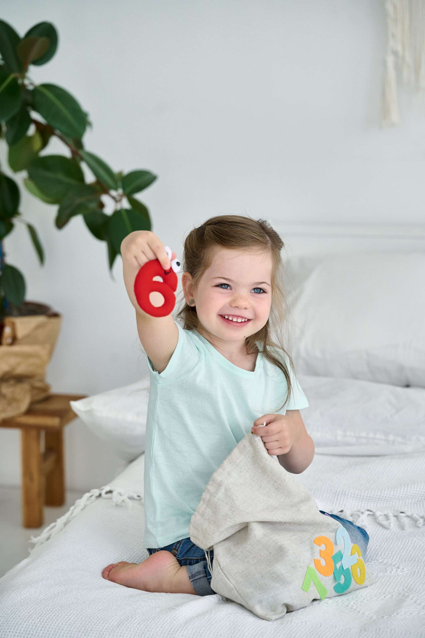 Тому за допомогою яскравого фетрового набору легко вивчати цифри.