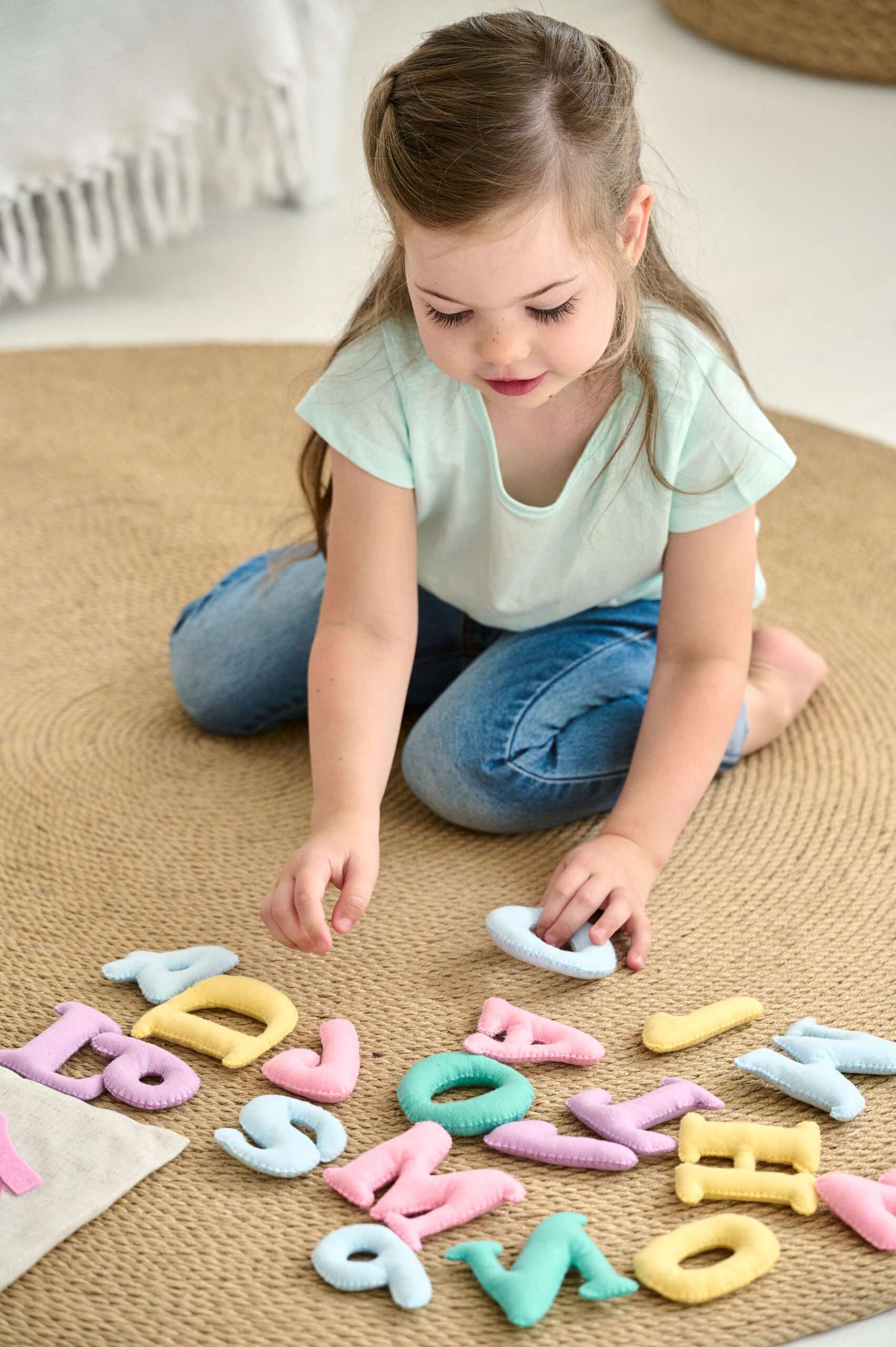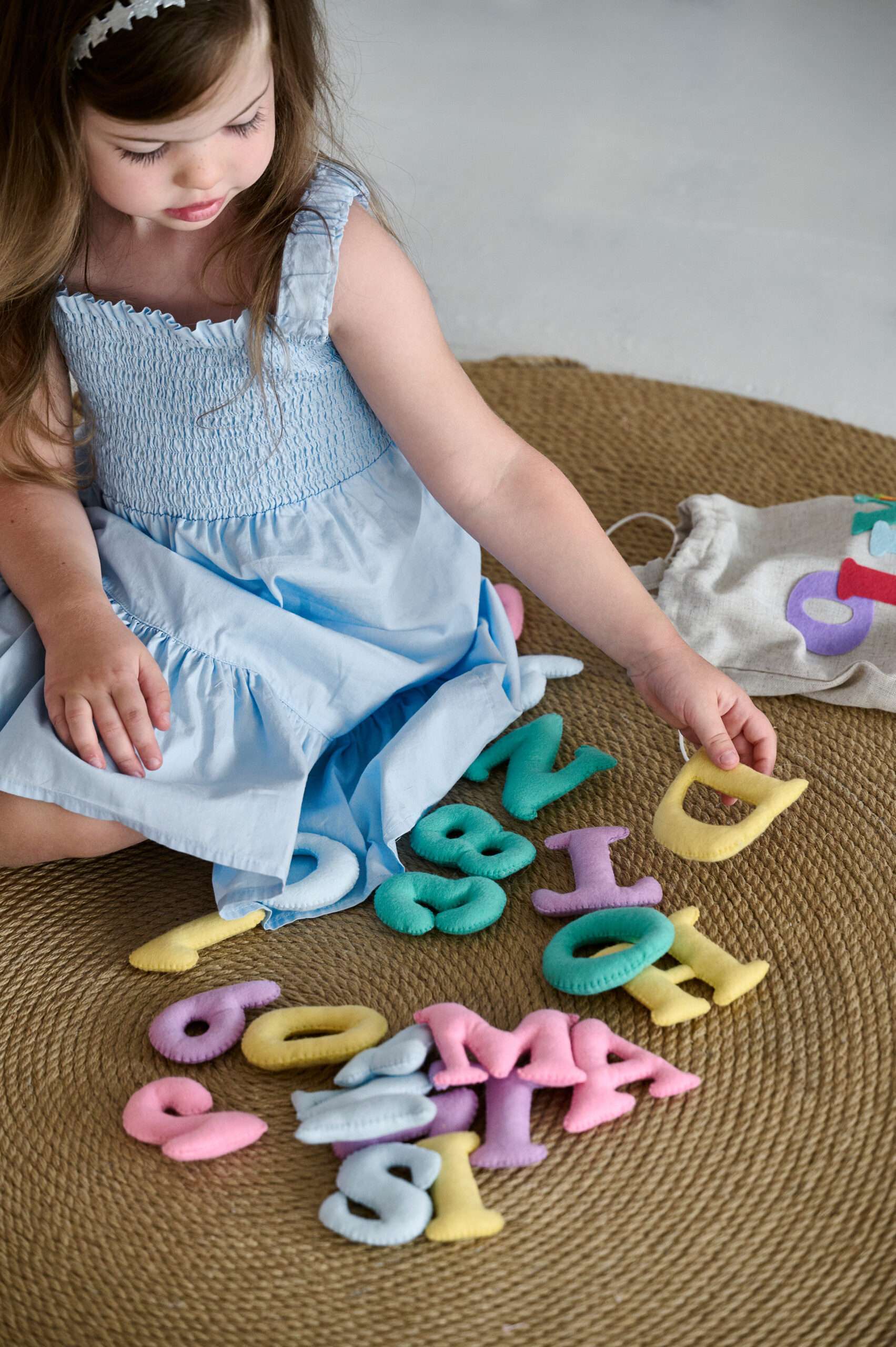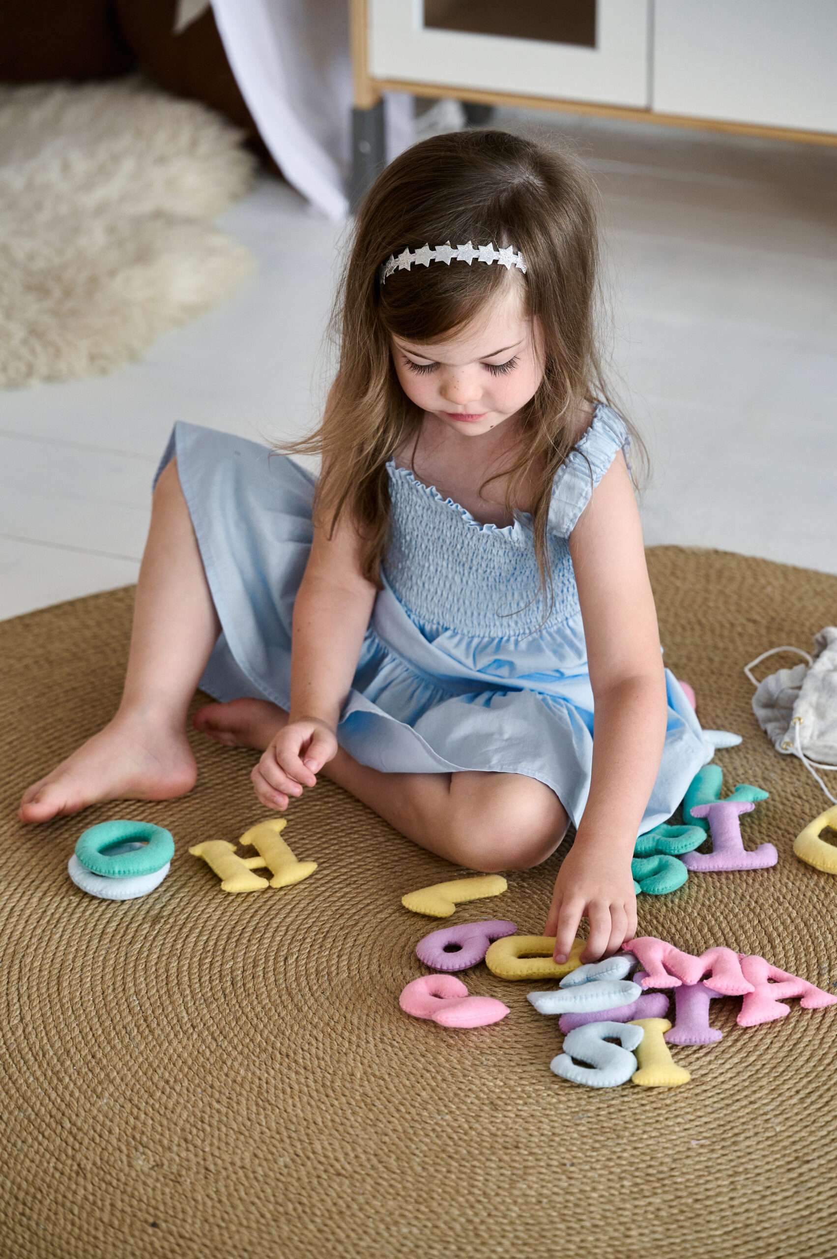 Літери з фетру для малюків — чудова розвиваюча іграшка для домашнього навчання.